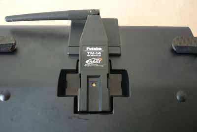 Na pravé straně vysílače je otvor pro teleskopickou anténu, ve verzi 2,4GHz je tento otvor zaslepen gumovou krytkou, stejně tak jako kulový kloub pro připojení této antény. Na spodní straně vysílače je vybrání pro RF modul – ve verzi 2,4GHz je zde umístěn modul i s malou výklopnou anténkou. Po odstranění tohoto modulu lze osadit modul 35 nebo 40MHz a samozřejmě je třeba ještě do kulového kloubu namontovat teleskopickou anténu. Vysílač má u každé paměti modelu definován typ modulu, případně kanál atp. RF moduly mají dva připojovací konektory na spodní straně a vysílač pozná o jaký typ modulu se jedná. Pokud je osazen jiný modul, než je naprogramováno v paměti zvoleného modelu, tak je na to uživatel upozorněn, a vysílač nevysílá, dokud uživatel neprovede a nepotvrdí změny ve vysílacím pásmu. Je celkem zajímavé, že pořadí kanálů se liší pro 7-mi kanálový FASST systém a 8-14ti kanálový Multi FASST. 7-mi kanálový FASST systém komunikuje trochu jinak a proto je pořadí kanálů sekvencováno tak, aby odezvy z vysílače byly co nejrychlejší. 8-14ti kanálový systém je plnohodnotný, bez omezení. Musím však říci, že jsem rozdíly v rychlosti pouhým okem nepoznal, a to jsem měl osazena velmi rychlá digitální serva.